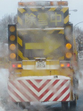 道路に「停止線」を書いても雪で埋もれるので、停止線は電柱に取り付けられています。