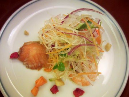生け花−白花竜胆と 愛知赤 和定食蓋状態 和定食蓋取り 小鉢 2012年10月6日