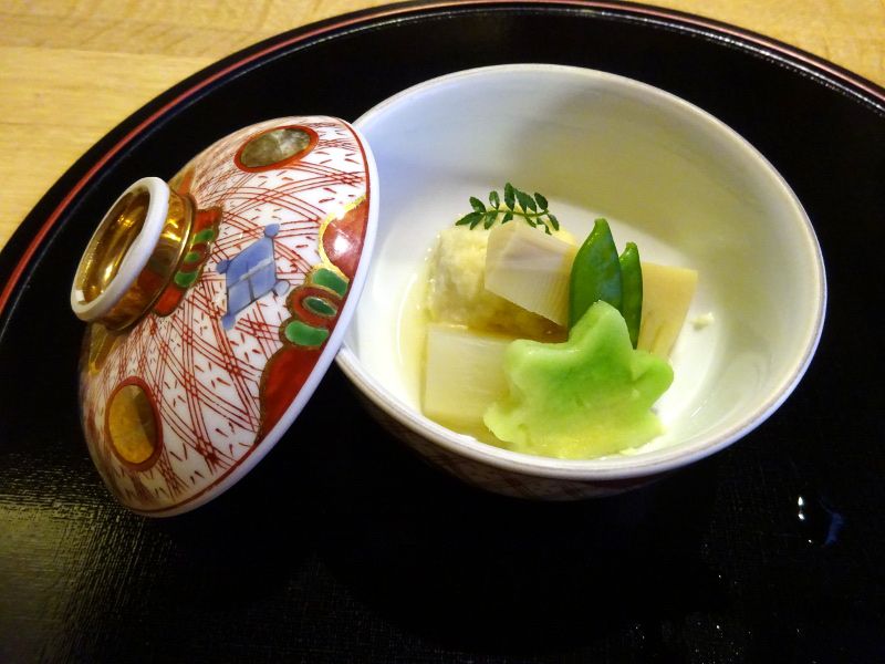 食前酒、前菜、小吸物 造里、お凌ぎ、口直し粥? 焚合せ 3 焚合せ2、"口直し