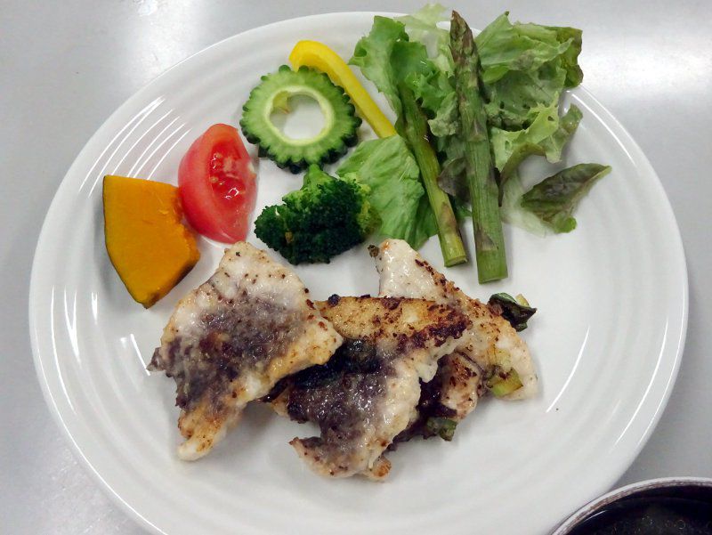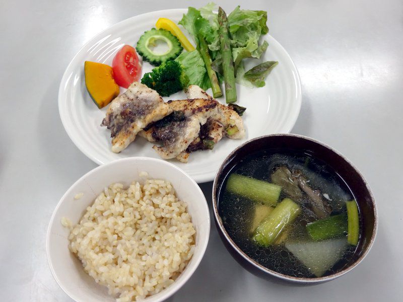 火曜日かぎけん亭定食(2020年3月3日) 3連休に伊豆大島で釣ったゴマサを冷凍保存したものを使いゴマサバソティーでした。