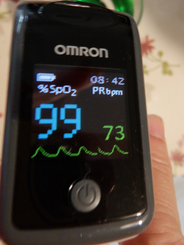 OMRON 血中の酸素飽和度 パルスオキシメータ 酸素飽和度が 99か98 なので数値だけはよい。