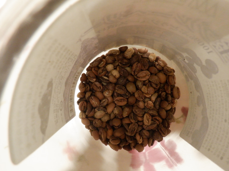 生豆 グジと珈琲焙煎器 生豆の焙煎前、焙煎後 焙煎後のコーヒー チャフ(豆皮のカス) 生豆の焙煎前、焙煎後 美味しいコーヒーの出来上がり アラビカコーヒー(モカグジ)生コーヒー豆焙煎器