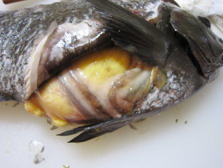 釣れたばかりの活メジナです。時間が経つと黒色斑に変色します。