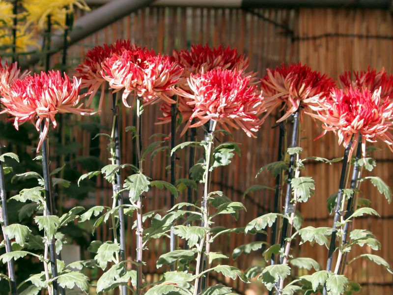 ●大菊(大輪菊)は通常一茎に一輪を咲かせるように摘芯することが多く、秋の菊花展によく出展されています。
