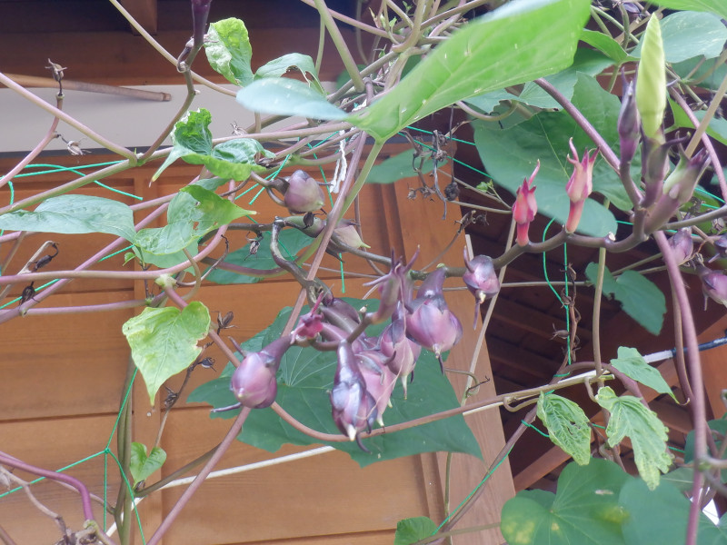 一般名:ヨルガオ(夜顔)、学名:Ipomoea alba、別名:イポメア アルバ(Ipomoea alba)、原産地:熱帯アメリカ、分類名:植物界被子植物門双子葉植物綱ナス目ヒルガオ科サツマイモ属ヨルガオ種、葉形:やじり形、葉序:互生、花形:漏斗状、花色:白(咲き始め)→赤(咲き終わり)、花径:5-15cm、開花期:7月-10月。