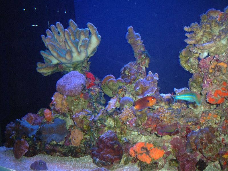 この水族館では珊瑚の養殖もしていました。水槽の中に何段もの棚をこしらえて、珊瑚を養殖・展示しています(右写真参照)。こんな水槽が他にも幾つかありました。