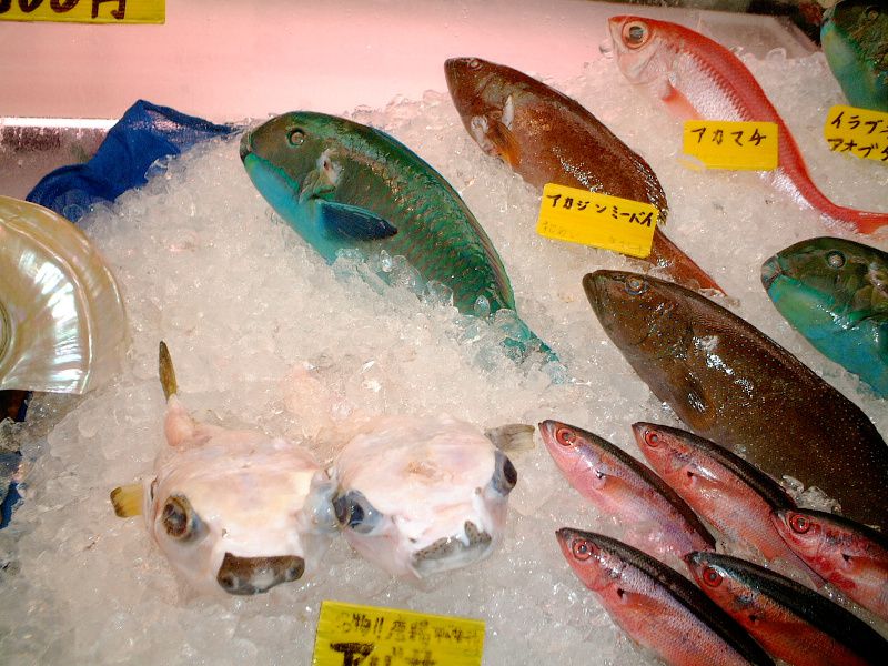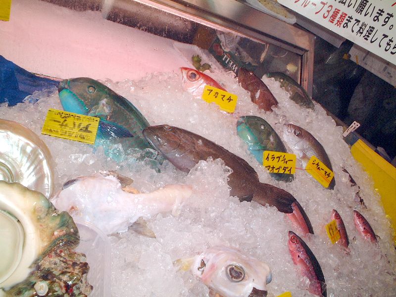 アオブダイと書いてありますが、ナンヨウブダイ(ゲンナー)のようです。沖縄にはアオブダイはいないらしい。